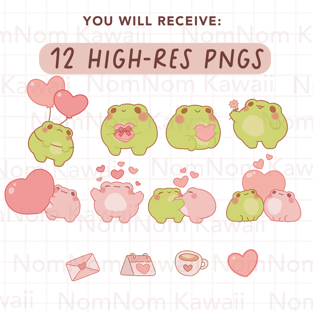 Kawaii Frog Valentine Clipart – Cute Frogs with Hearts, Love Letters & More!