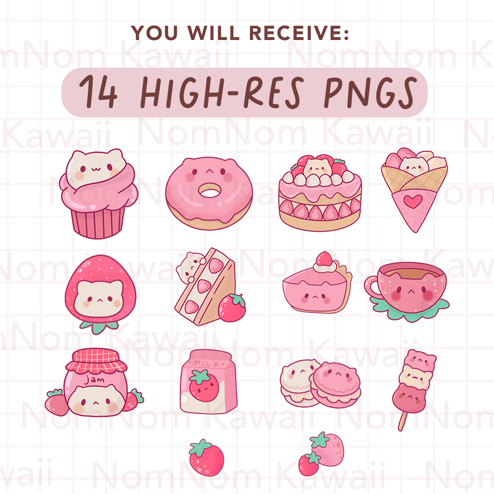 ✨ Strawberry Cat Clipart – Cute Cat Cupcake, Cat Donut, Cat Pie & More! ✨